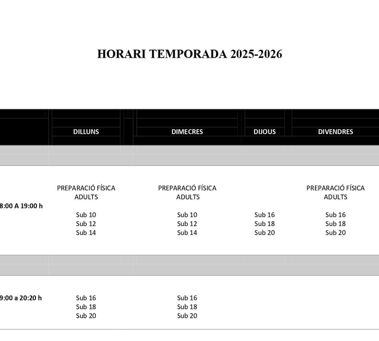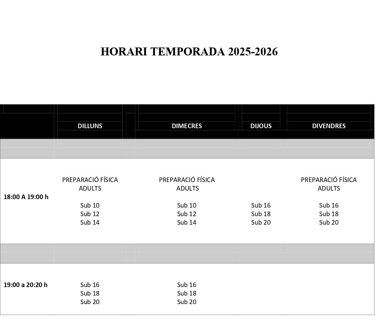 A partir del 01 de Setembre de 2025 per les categories Sub 16 i superiors